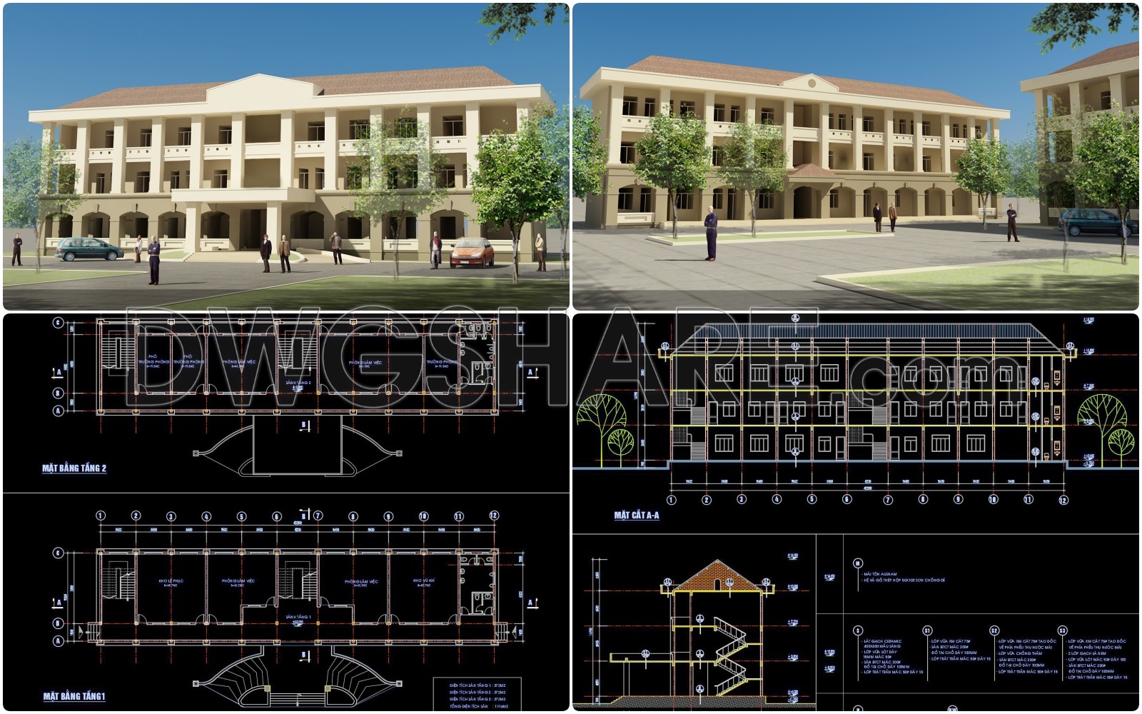 106. Download the design drawings for a 3-story office building with a total area of 1,080 m2