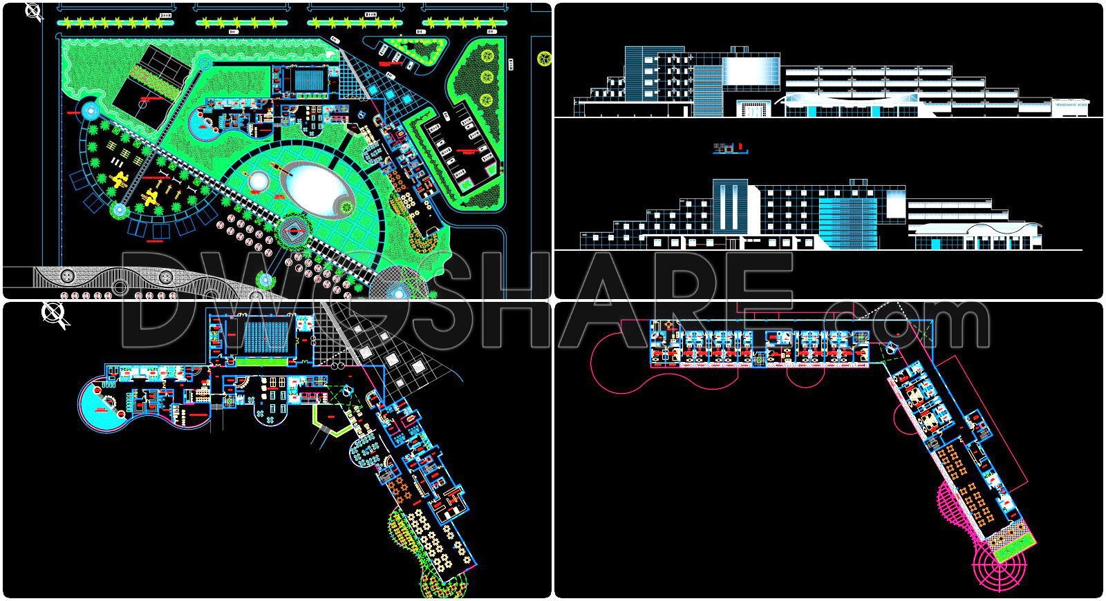 135. Architectural design drawings of a 4-star hotel in AutoCAD DWG