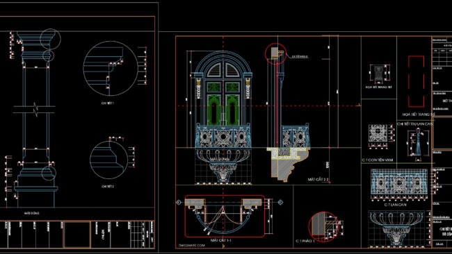 207.Detailed AutoCAD drawings of vertical facades in classical architecture