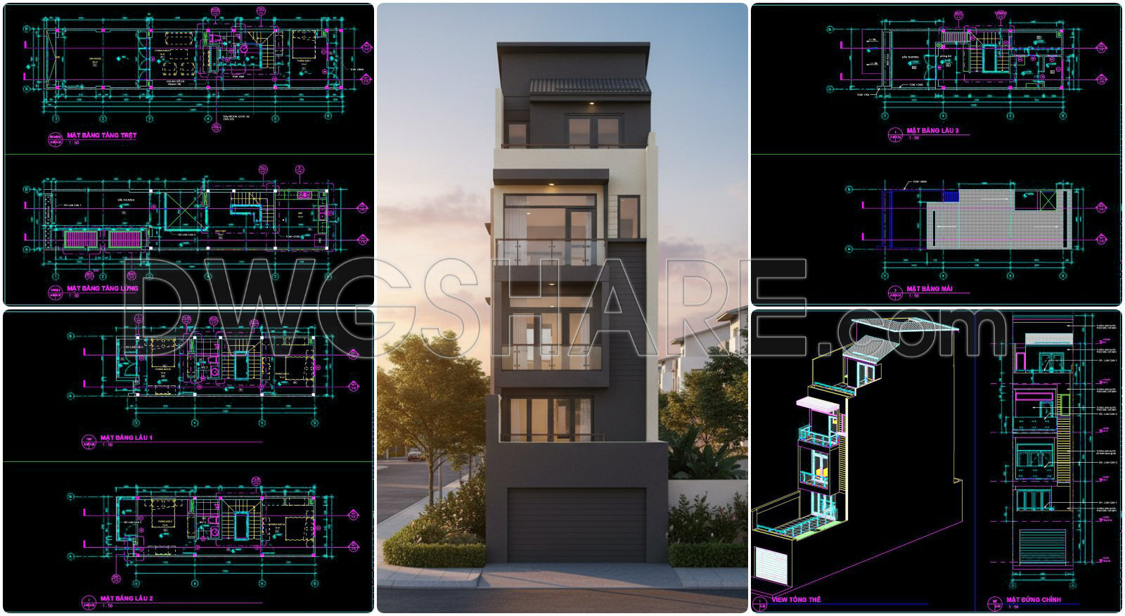 478. Download CAD Design Drawings for a 3-Story House with Dimensions 4.2m x 12.5m
