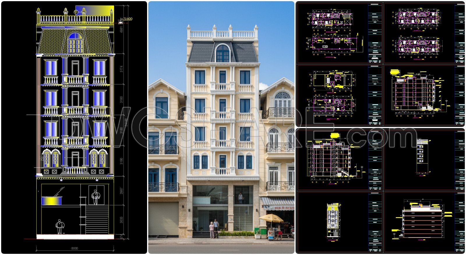 846. Download Cad Drawings Of A 5-storey Hotel And Residential Building Design (8m × 27m)