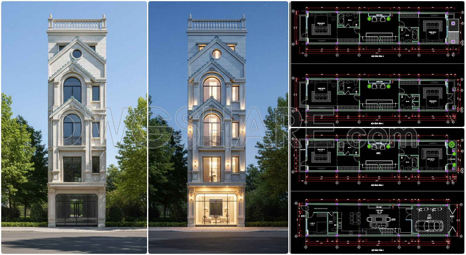 860. Full CAD Drawing of 5-Storey Townhouse – Detailed Floor Plans & Facade